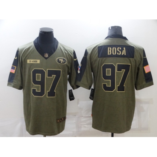 >Men's San Francisco 49ers #97 Nick Bosa Nike Olive 2021 Salute To Service Limited Player Jersey