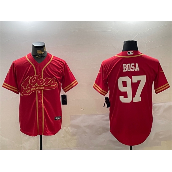 >Men's San Francisco 49ers #97 Nick Bosa Red Cool Base Stitched Baseball Jersey