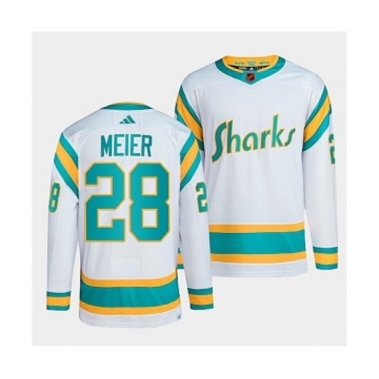 Men's San Jose Sharks #28 Timo Meier White 2022 Reverse Retro Stitched Jersey