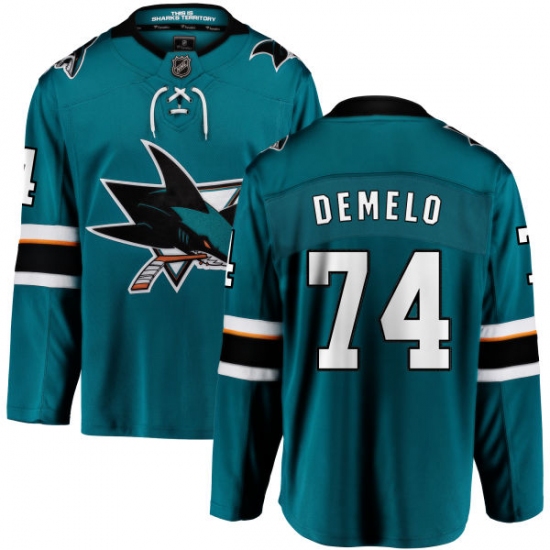 Home>NHL>San Jose Sharks>Dylan DeMelo>Men's San Jose Sharks #74 Dylan DeMelo Fanatics Branded Teal Green Home Breakaway NHL Jersey