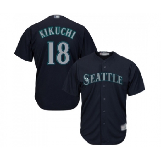 >Men's Seattle Mariners #18 Yusei Kikuchi Replica Navy Blue Alternate 2 Cool Base Baseball Jersey