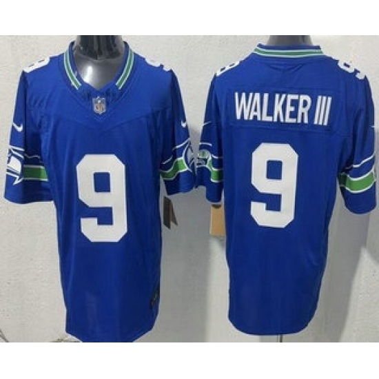 Men's Seattle Seahawks #9 Kenneth Walker III Royal 2025 F.U.S.E. Super Bowl LX And 50th Season Vapor Throwback Limited Football Stitched Jersey