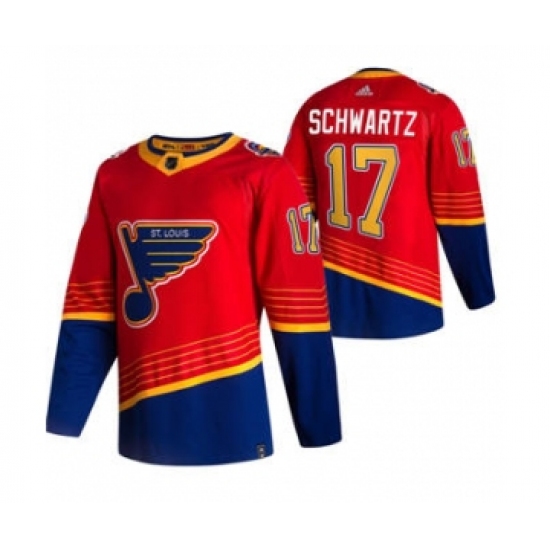 >Men's St. Louis Blues #17 Jaden Schwartz Red 2020-21 Reverse Retro Alternate Hockey Jersey