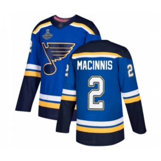 Men's St. Louis Blues #2 Al Macinnis Authentic Royal Blue Home 2019 Stanley Cup Champions Hockey Jersey