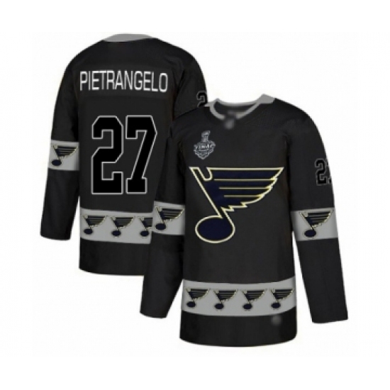 >Men's St. Louis Blues #27 Alex Pietrangelo Authentic Black Team Logo Fashion 2019 Stanley Cup Final Bound Hockey Jersey