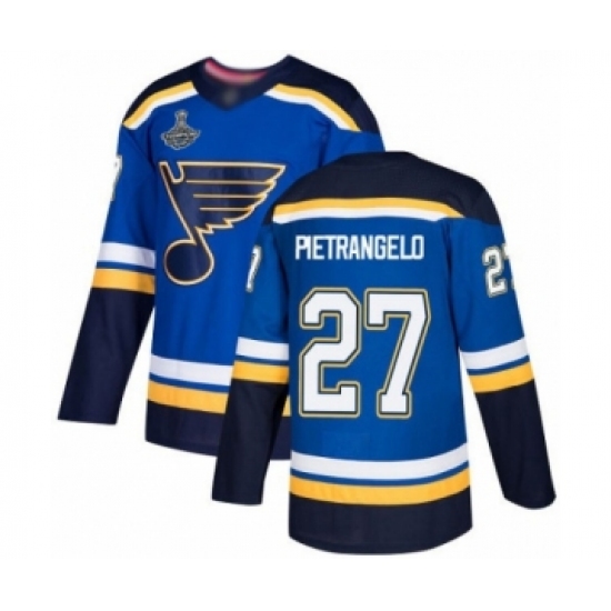 >Men's St. Louis Blues #27 Alex Pietrangelo Authentic Royal Blue Home 2019 Stanley Cup Champions Hockey Jersey