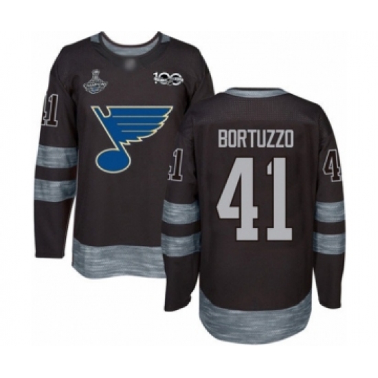 >Men's St. Louis Blues #41 Robert Bortuzzo Authentic Black 1917-2017 100th Anniversary 2019 Stanley Cup Champions Hockey Jersey