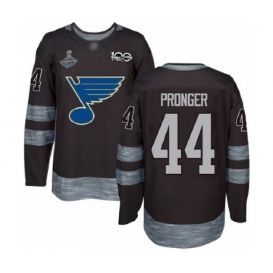 Men's St. Louis Blues #44 Chris Pronger Authentic Black 1917-2017 100th Anniversary 2019 Stanley Cup Champions Hockey Jersey