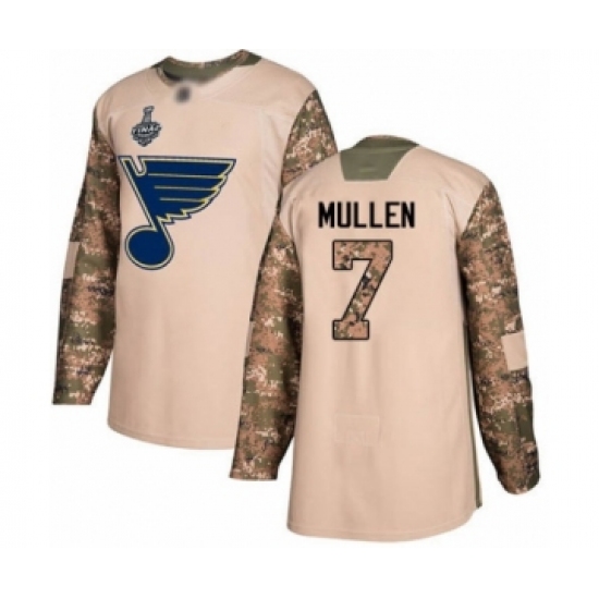 Men's St. Louis Blues #7 Joe Mullen Authentic Camo Veterans Day Practice 2019 Stanley Cup Final Bound Hockey Jersey