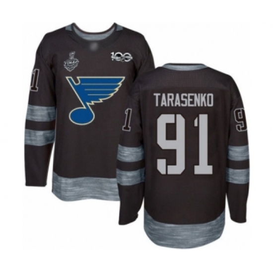 Men's St. Louis Blues #91 Vladimir Tarasenko Authentic Black 1917-2017 100th Anniversary 2019 Stanley Cup Final Bound Hockey Jersey