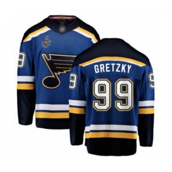 >Men's St. Louis Blues #99 Wayne Gretzky Fanatics Branded Royal Blue Home Breakaway 2019 Stanley Cup Final Bound Hockey Jersey