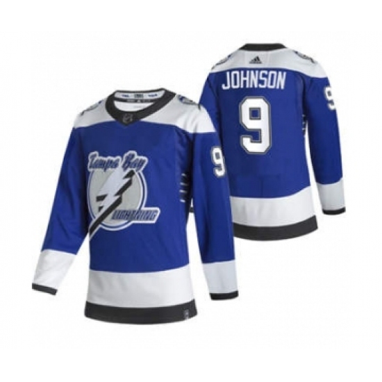 >Men's Tampa Bay Lightning #9 Tyler Johnson Blue 2020-21 Reverse Retro Alternate Hockey Jersey