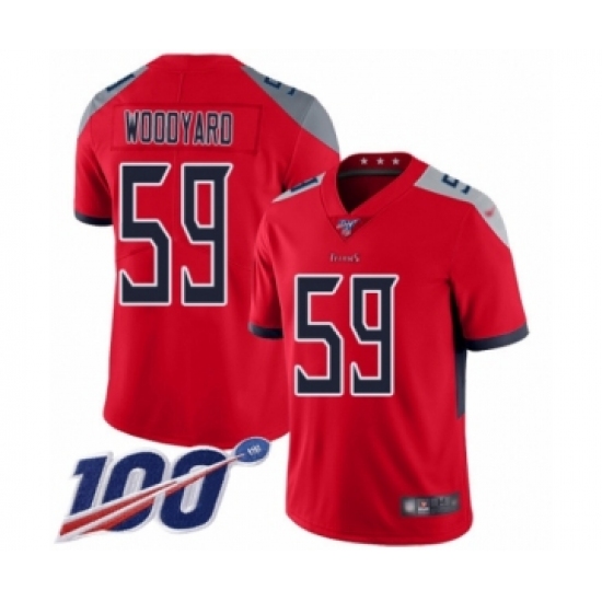 >Men's Tennessee Titans #59 Wesley Woodyard Limited Red Inverted Legend 100th Season Football Jersey