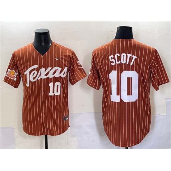 >Men's Texas Longhorns #10 Mia Scott Orange Pinstripe 2025 Softball National Champions & SEC Patch Stitched Jersey