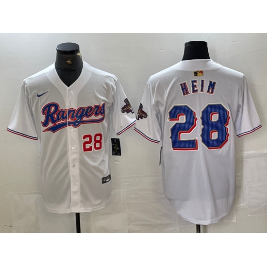 Men's Texas Rangers #28 Jonah Heim White 2023 World Series Champions Cool Base Jersey