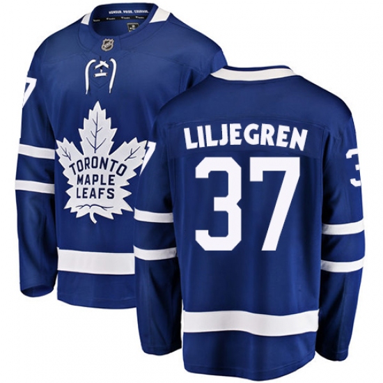 >Men's Toronto Maple Leafs #37 Timothy Liljegren Authentic Royal Blue Home Fanatics Branded Breakaway NHL Jersey