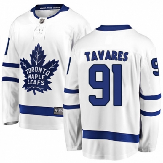>Men's Toronto Maple Leafs #91 John Tavares Authentic White Away Fanatics Branded Breakaway NHL Jersey
