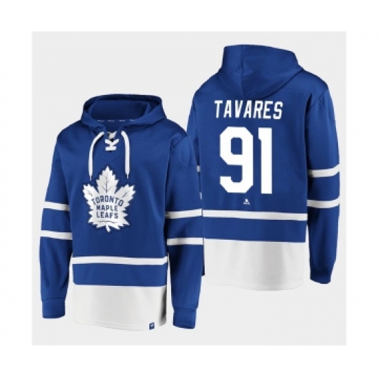 >Men's Toronto Maple Leafs #91 John Tavares Blue All Stitched Sweatshirt Hoodie