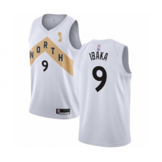 >Men's Toronto Raptors #9 Serge Ibaka Swingman White 2019 Basketball Finals Champions Jersey - City Edition