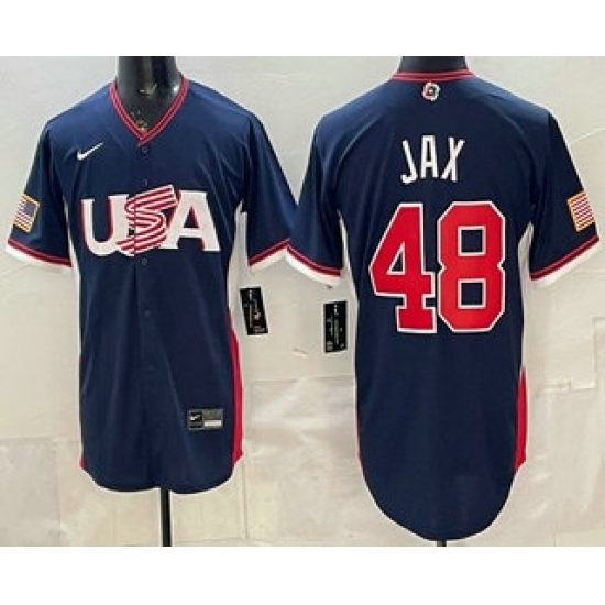 Men's USA #48 Griffin Jax Navy 2026 World Baseball Classic Cool Base Jersey