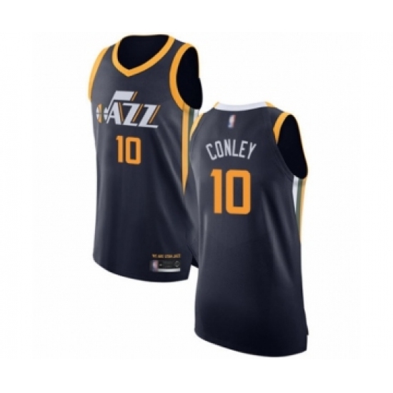 >Men's Utah Jazz #10 Mike Conley Authentic Navy Blue Basketball Jersey - Icon Edition