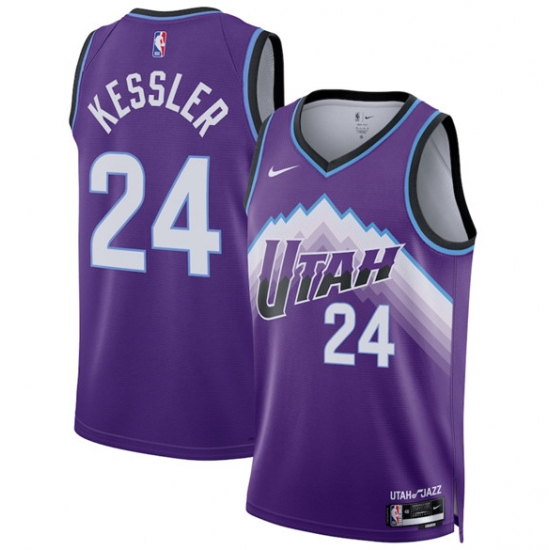 >Men's Utah Jazz #24 Walker Kessler Purple 2025 Icon Edition Stitched Basketball Jersey