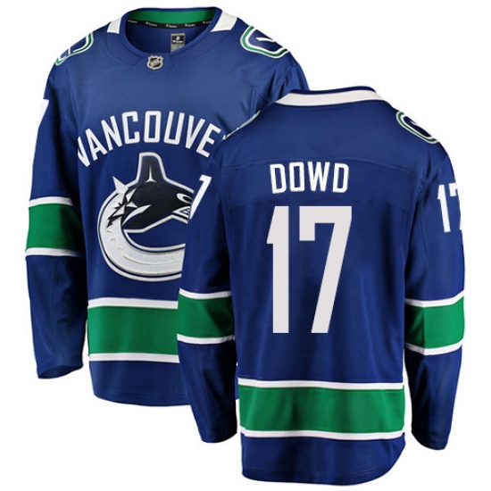 >Men's Vancouver Canucks #17 Nic Dowd Fanatics Branded Blue Home Breakaway NHL Jersey