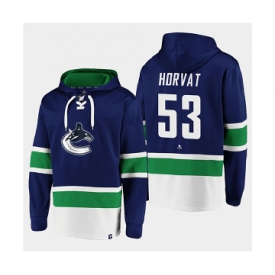 >Men's Vancouver Canucks #53 Bo Horvat Blue All Stitched Sweatshirt Hoodie