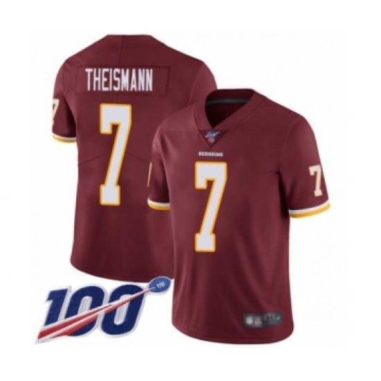 >Men's Washington Redskins #7 Joe Theismann Burgundy Red Team Color Vapor Untouchable Limited Player 100th Season Football Jersey
