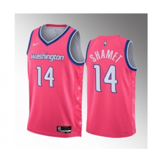 Men's Washington Wizards #14 Landry Shamet Pink 2023 Draft City Edition Stitched Jersey