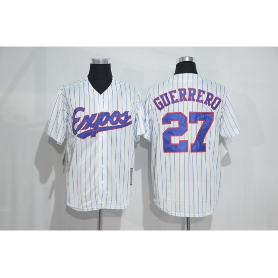 >Mitchell And Ness Montreal Expos #27 Vladimir Guerrero White Strip Throwback Stitched Baseball Jersey