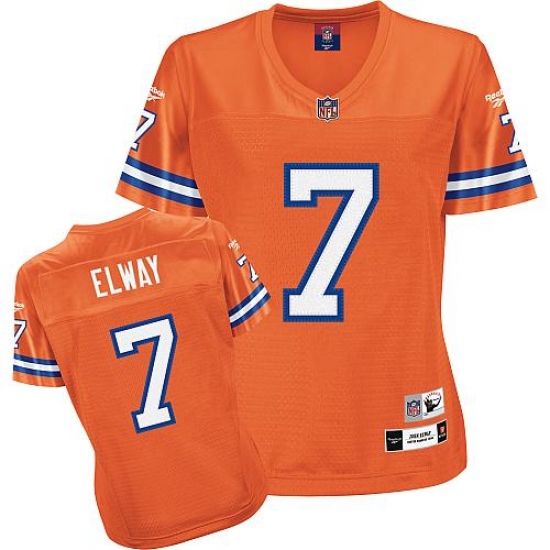 Home>NFL>Denver Broncos>John Elway>Reebok Denver Broncos #7 John Elway Orange Women's Throwback Team Color Replica NFL Jersey