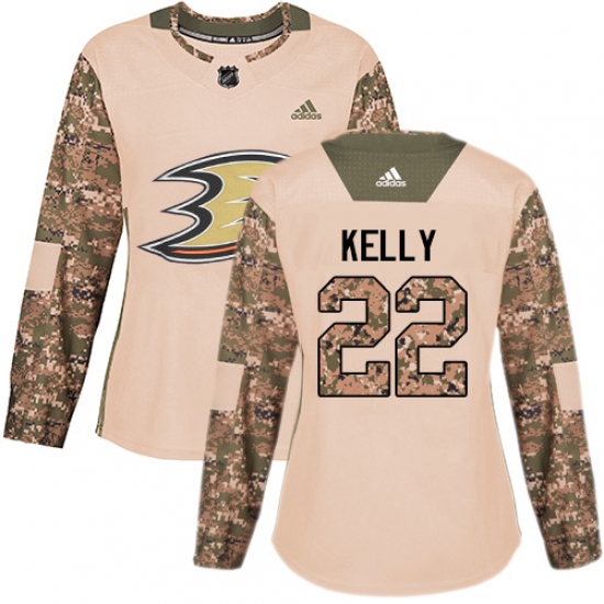 >Women's Adidas Anaheim Ducks #22 Chris Kelly Authentic Camo Veterans Day Practice NHL Jersey