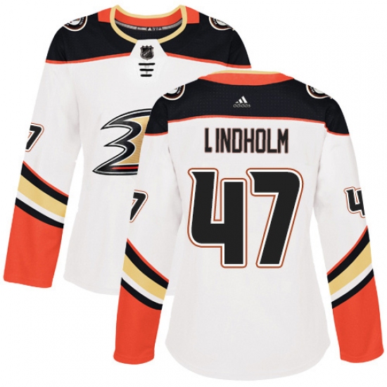 Women's Adidas Anaheim Ducks #47 Hampus Lindholm Authentic White Away NHL Jersey