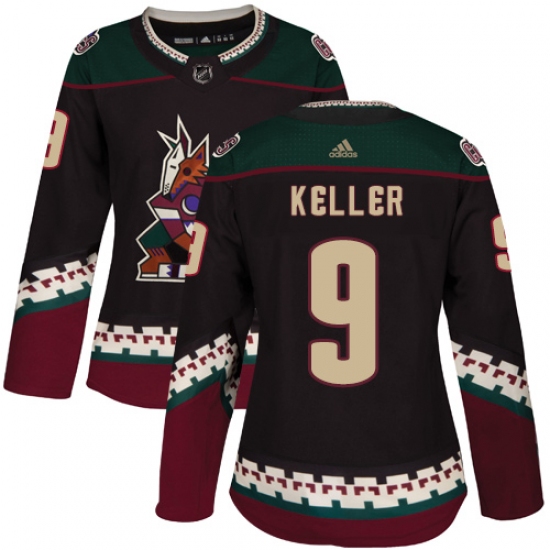 >Women's Adidas Arizona Coyotes #9 Clayton Keller Premier Black Alternate NHL Jersey