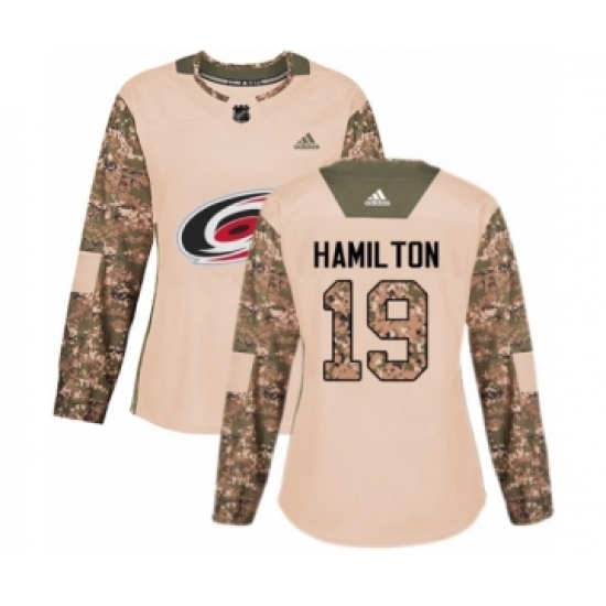 Women's Adidas Carolina Hurricanes #19 Dougie Hamilton Authentic Camo Veterans Day Practice NHL Jersey