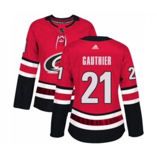 >Women's Adidas Carolina Hurricanes #21 Julien Gauthier Premier Red Home NHL Jersey