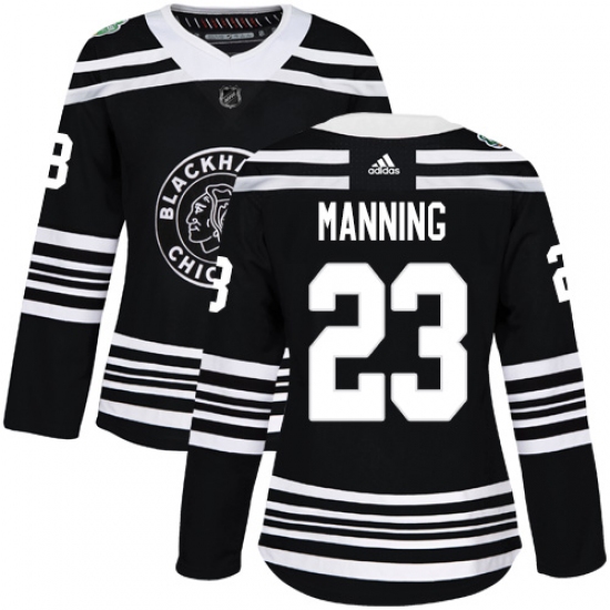 >Women's Adidas Chicago Blackhawks #23 Brandon Manning Authentic Black 2019 Winter Classic NHL Jersey