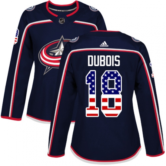 Home>NHL>Columbus Blue Jackets>Pierre-Luc Dubois>Women's Adidas Columbus Blue Jackets #18 Pierre-Luc Dubois Authentic Navy Blue USA Flag Fashion NHL Jersey