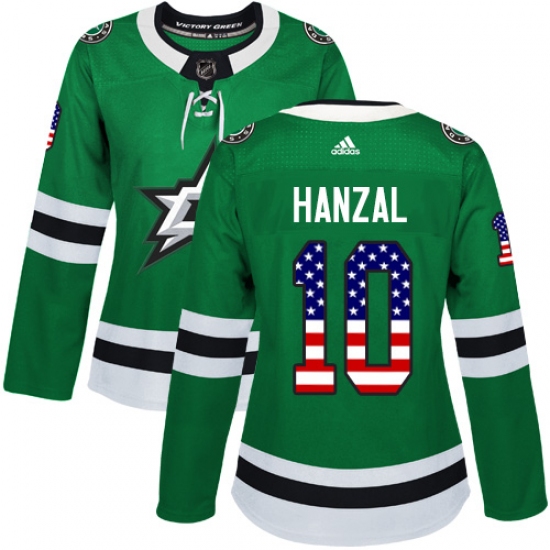Home>NHL>Dallas Stars>Martin Hanzal>Women's Adidas Dallas Stars #10 Martin Hanzal Authentic Green USA Flag Fashion NHL Jersey