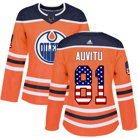 Home>NHL>Edmonton Oilers>Yohann Auvitu>Women's Adidas Edmonton Oilers #81 Yohann Auvitu Authentic Orange USA Flag Fashion NHL Jersey