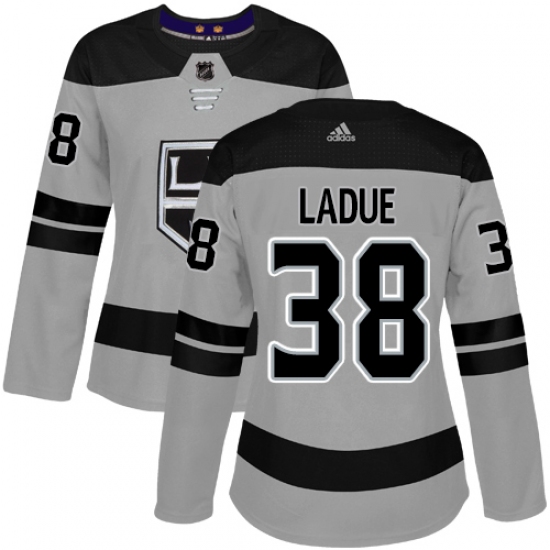 >Women's Adidas Los Angeles Kings #38 Paul LaDue Authentic Gray Alternate NHL Jersey