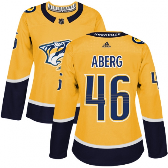 Home>NHL>Nashville Predators>Pontus Aberg>Women's Adidas Nashville Predators #46 Pontus Aberg Authentic Gold Home NHL Jersey