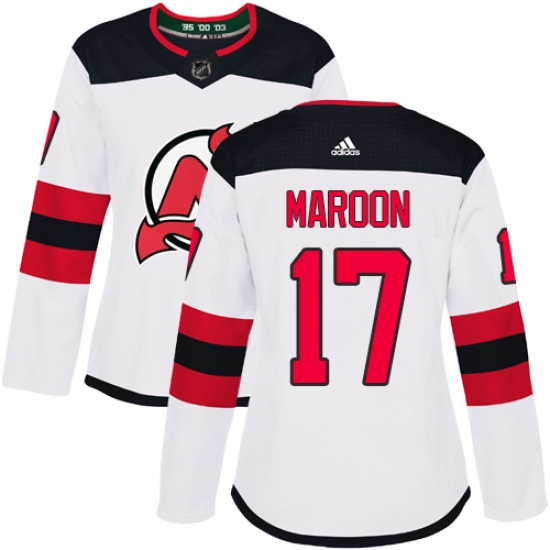 Women's Adidas New Jersey Devils #17 Patrick Maroon Authentic White Away NHL Jersey