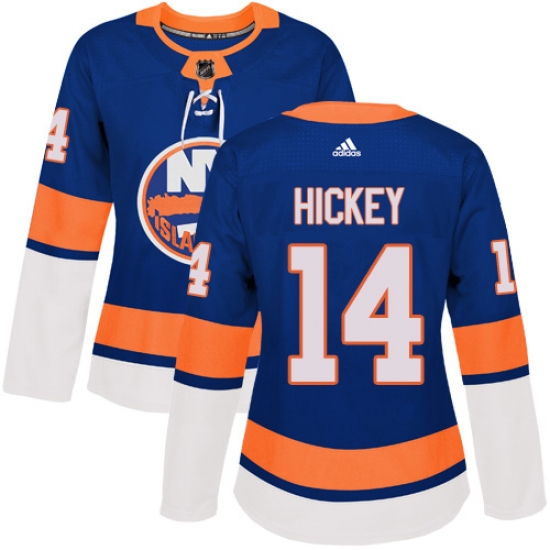 Home>NHL>New York Islanders>Thomas Hickey>Women's Adidas New York Islanders #14 Thomas Hickey Premier Royal Blue Home NHL Jersey
