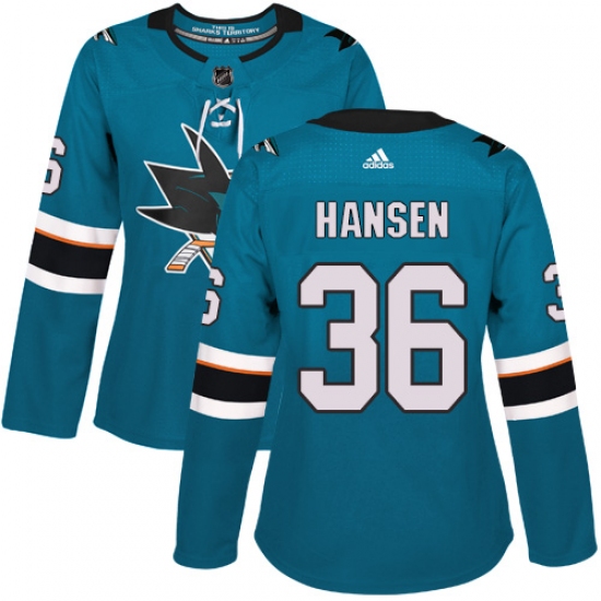 Home>NHL>San Jose Sharks>Jannik Hansen>Women's Adidas San Jose Sharks #36 Jannik Hansen Premier Teal Green Home NHL Jersey