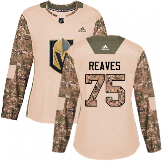 >Women's Adidas Vegas Golden Knights #75 Ryan Reaves Authentic Camo Veterans Day Practice NHL Jersey