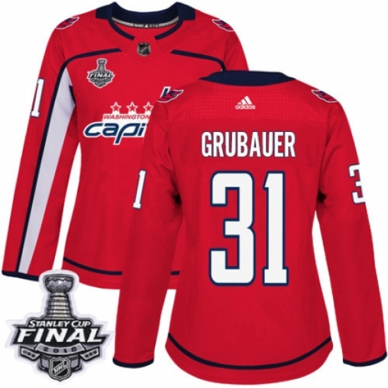 Women's Adidas Washington Capitals #31 Philipp Grubauer Authentic Red Home 2018 Stanley Cup Final NHL Jersey