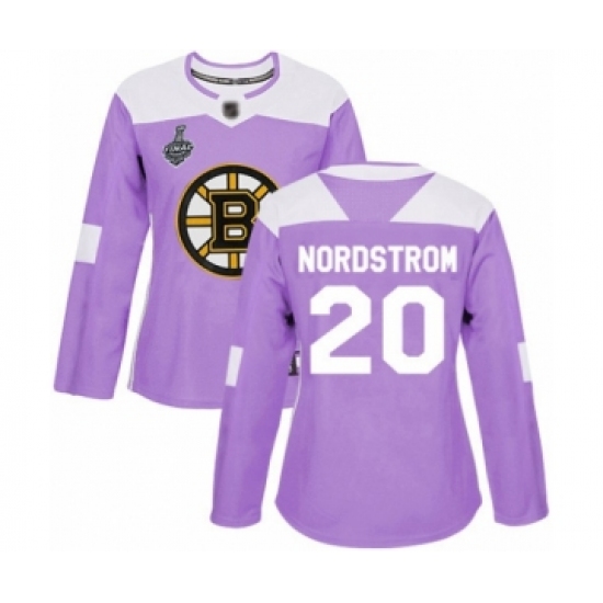 >Women's Boston Bruins #20 Joakim Nordstrom Authentic Purple Fights Cancer Practice 2019 Stanley Cup Final Bound Hockey Jersey