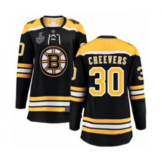 >Women's Boston Bruins #30 Gerry Cheevers Authentic Black Home Fanatics Branded Breakaway 2019 Stanley Cup Final Bound Hockey Jersey